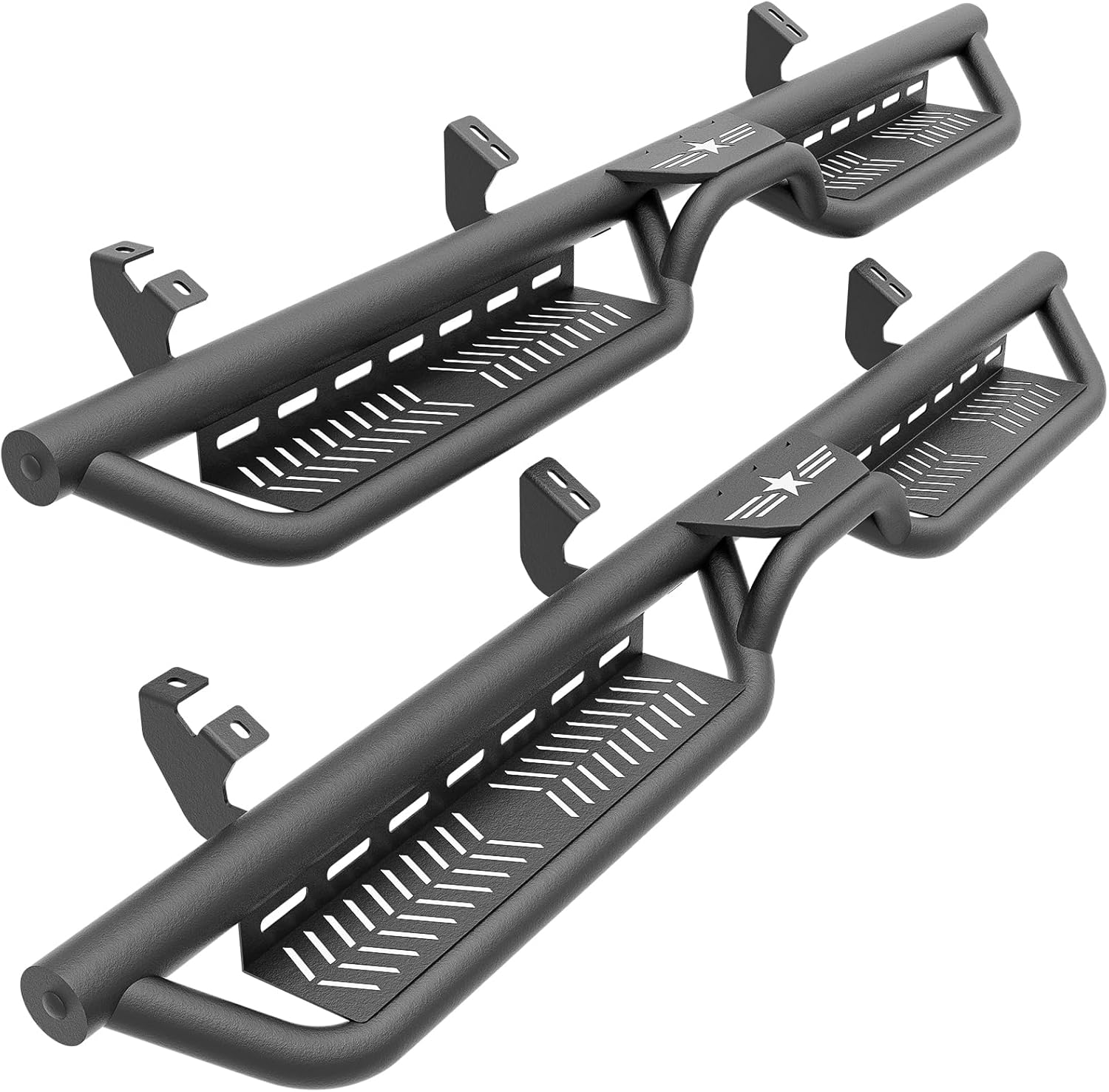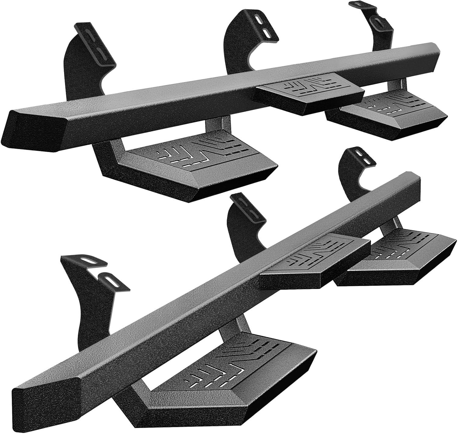 • Durable & Sturdy: The side steps are made of heavy-duty carbon steel with a dual-textured black powder-coated finish, providing excellent rust and corrosion resistance for long-lasting durability. Each side supports up to 550 lbs, ensuring stability and reliability.